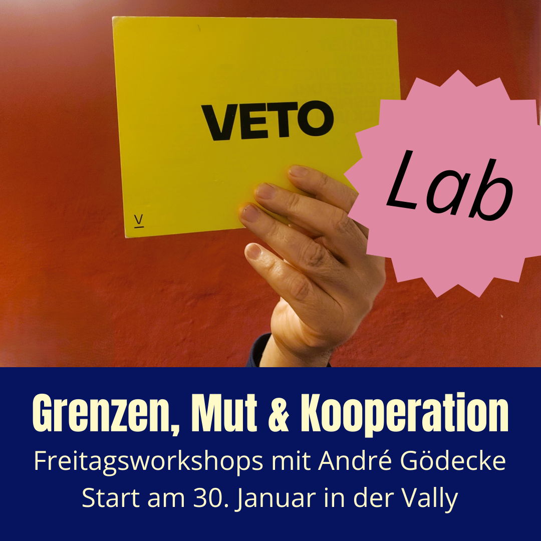 /30.01.26 Willkommen im Veto Lab am Freitagnachmittag! Lass durchatmen, lockermachen und reflektieren: Wo braucht es mehr Veto in Deinem Leben? Wie reagierst Du auf das Veto, das andere Dir entgegensetzen? Was hilft dabei, gut bei Dir zu sein, Klartext zu sprechen und zu kooperieren? Mithilfe von Werkzeugen wie den sieben demokratischen Führungsjokern, Mischpult oder Statustraining […]