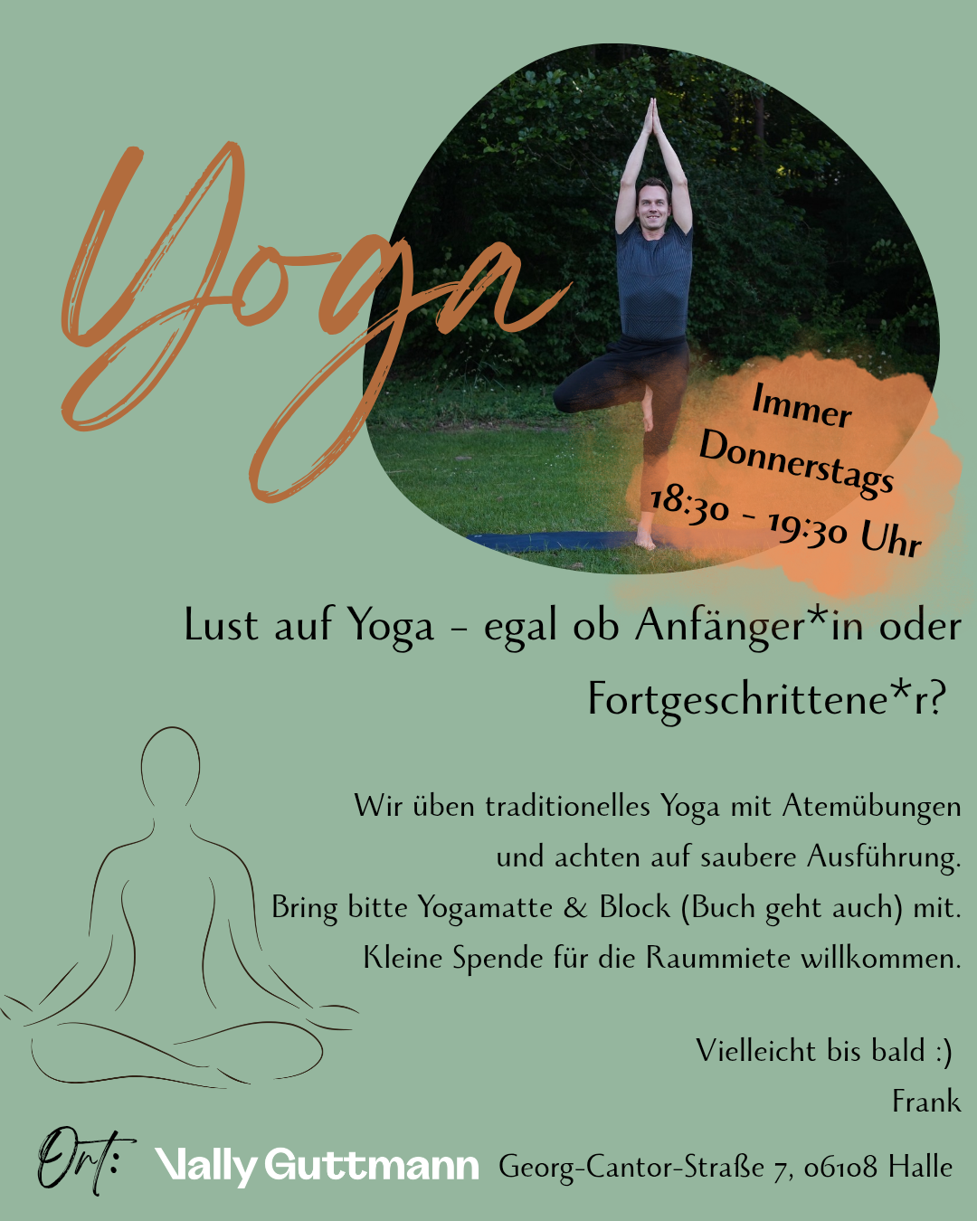 08.01.26/ Lust auf Yoga – egal ob Anfänger*in oder Fortgeschrittene*r? Wir üben traditionelles Yoga mit Atemübungen und achten auf saubere Ausführung. Bring bitte Yogamatte und Block (Buch geht auch) mit. Kleine Spende für Raummiete willkommen. Der Kurs findet an jedem Donnerstag von 18:00 bis 19:00 Uhr statt. Vielleicht bis bald, Frank Ort: VALLY Guttmann Nachbarschaftsraum, […]
